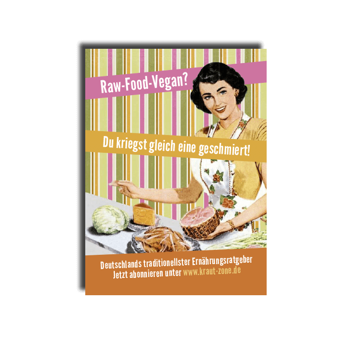 Aufschrift: Raw-Food-Vegan? Du kriegst gleich eine geschmiert!